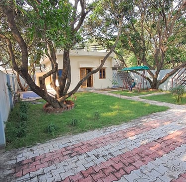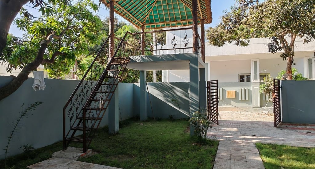 Experience luxury and tranquility at our farmhouse, nestled near the Ganga, surrounded by lush mango orchards and premium amenities for a perfect getaway.